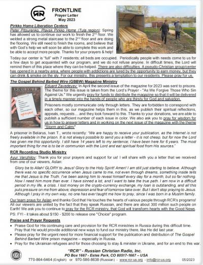 Журнал «Евангелие за колючей проволокой», Эдуард Заведеев: : Со многими заключенными мы переписываемся годами. В июне 2023 года освободился Александр О. из колонии в Новосибирской области. С ним мы начали переписку в 2017 году. Он отсидел в общей сложности 31 год. Он покаялся в 2019 году и просил, чтобы мы высылали журнал его маме - Нине.