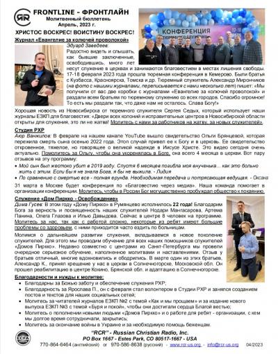 ФРОНТЛАЙН- Mолитвенное письмо
