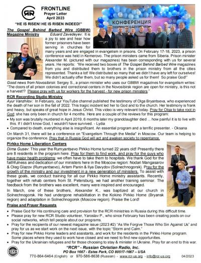 The Gospel Behind Barbed Wire (GBBW) Magazine Ministry, Eduard Zavedeyev: It is a joy to see and hear how former prisoners have been serving in churches for many years and are engaged in evangelism in prisons.