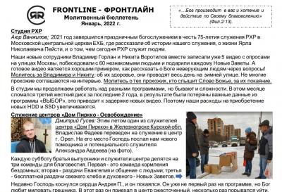 There is good news from the regions: - During the pandemic in one Siberian prison, the administration allowed the “outside” prison ministers to visit prisoners and distribute the magazine. Praise God!