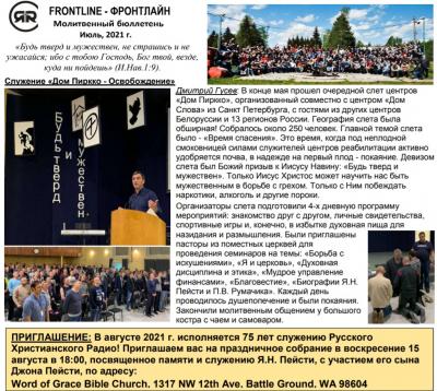 ФРОНТЛАЙН- Mолитвенное письмо, ПРИГЛАШЕНИЕ -07.21