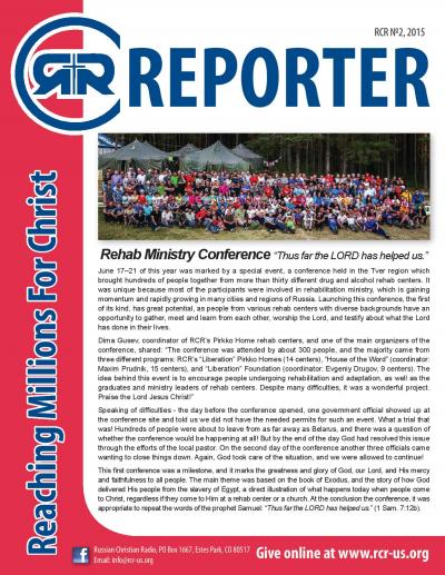 June 17–21 of this year was marked by a special event, a conference held in the Tver region which brought hundreds of people together from more than thirty different drug and alcohol rehab centers. It was unique because most of the participants were involved in rehabilitation ministry, which is gaining momentum and rapidly growing in many cities and regions of Russia. Launching this conference, the first of its kind, has great potential, as people from various rehab centers with diverse backgrounds have an opportunity to gather, meet and learn from each other, worship the Lord, and testify about what the Lord has done in their lives...
